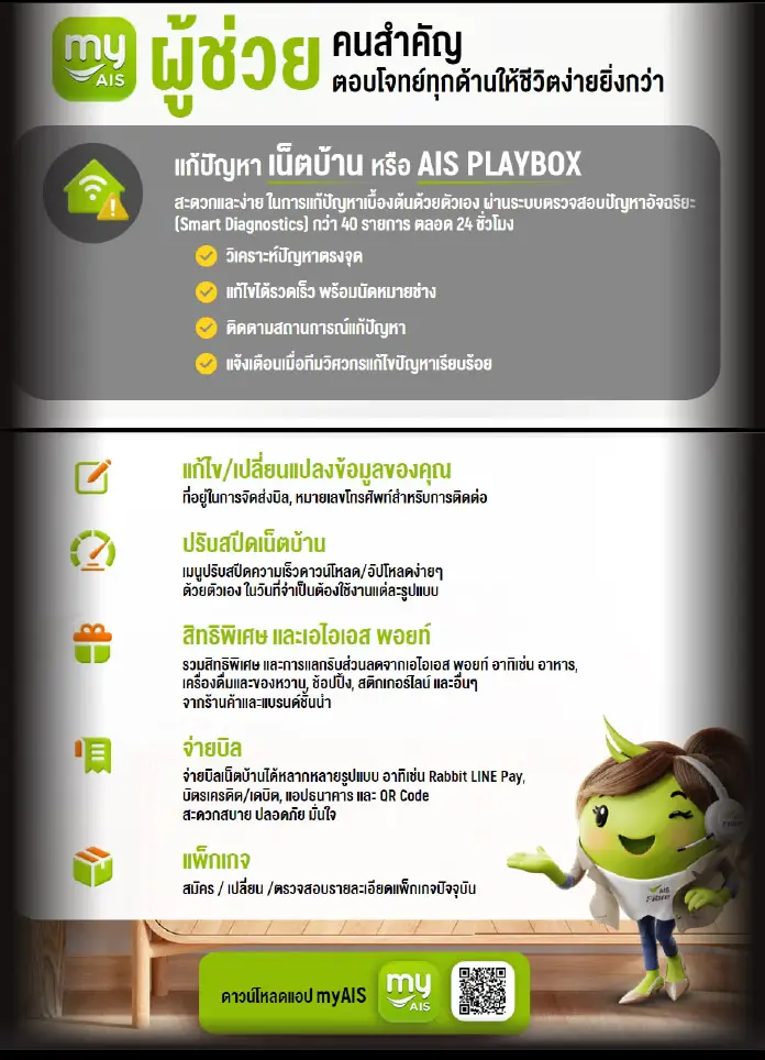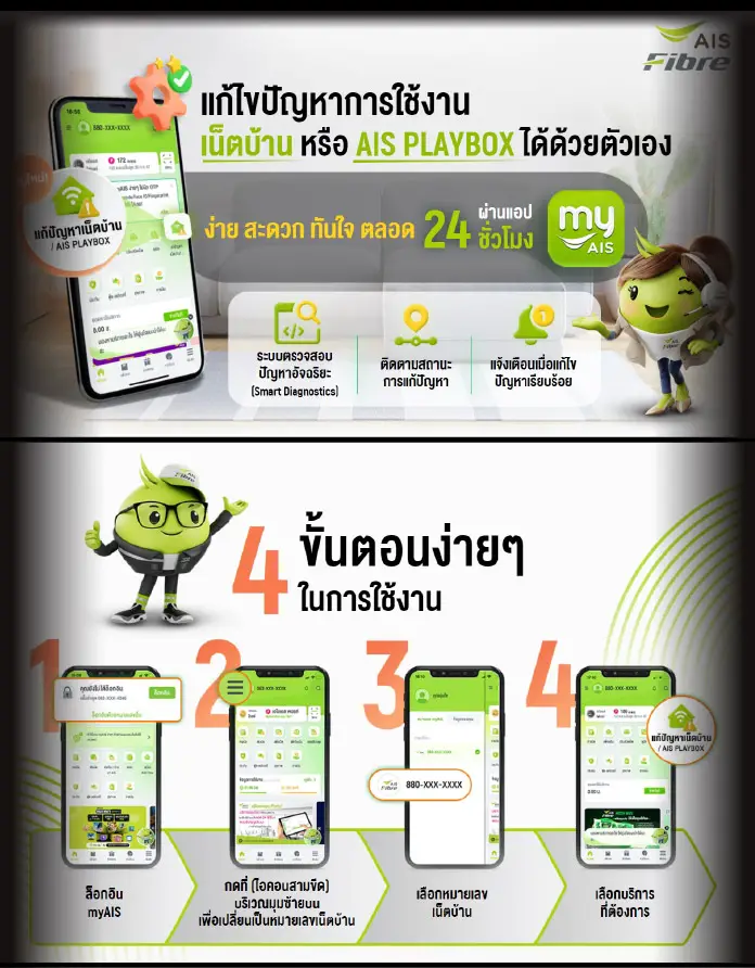 หากแก้ไขแล้วยังพบปัญหาอินเทอร์เน็ต AIS Fibre แจ้งปัญหาที่ myAIS หรือ AIS Call Center 1175